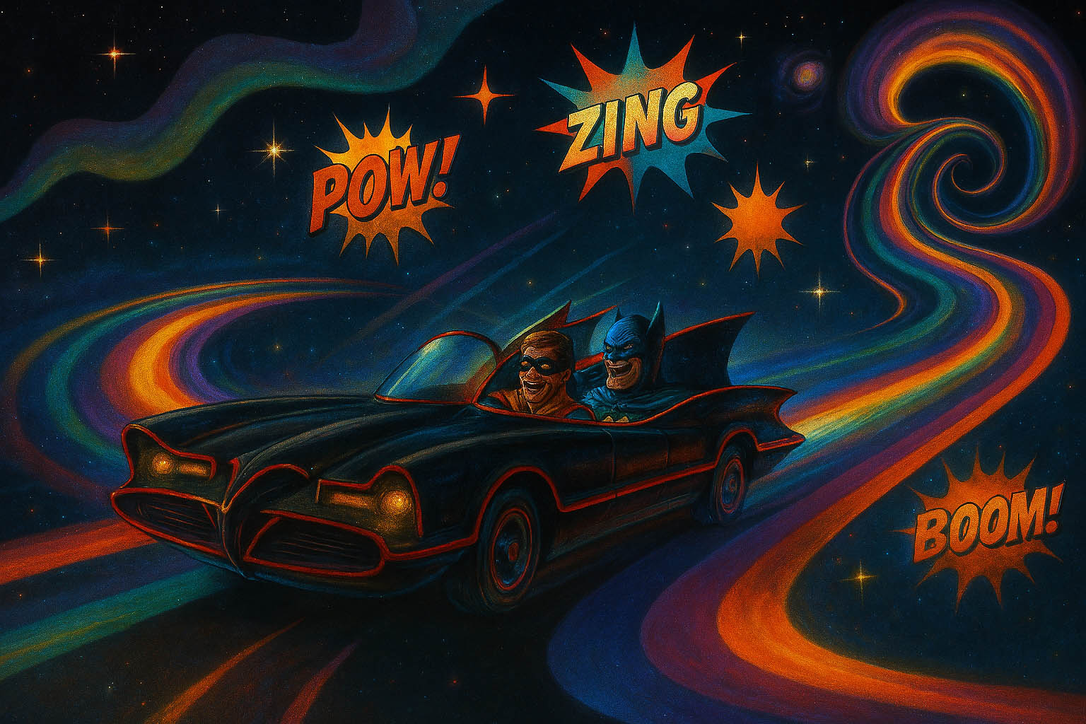 Antes de que Gotham se volviera gótica y los superhéroes se tiñeran de trauma, hubo un rugido. Un rugido barnizado en negro mate y delineado con rojo incandescente. Era el rugido de la serie de Batman de 1966, y más aún, el del Batmóvil: un coche que parecía haber salido directamente de una exposición psicodélica de Detroit con destino a la estratósfera.